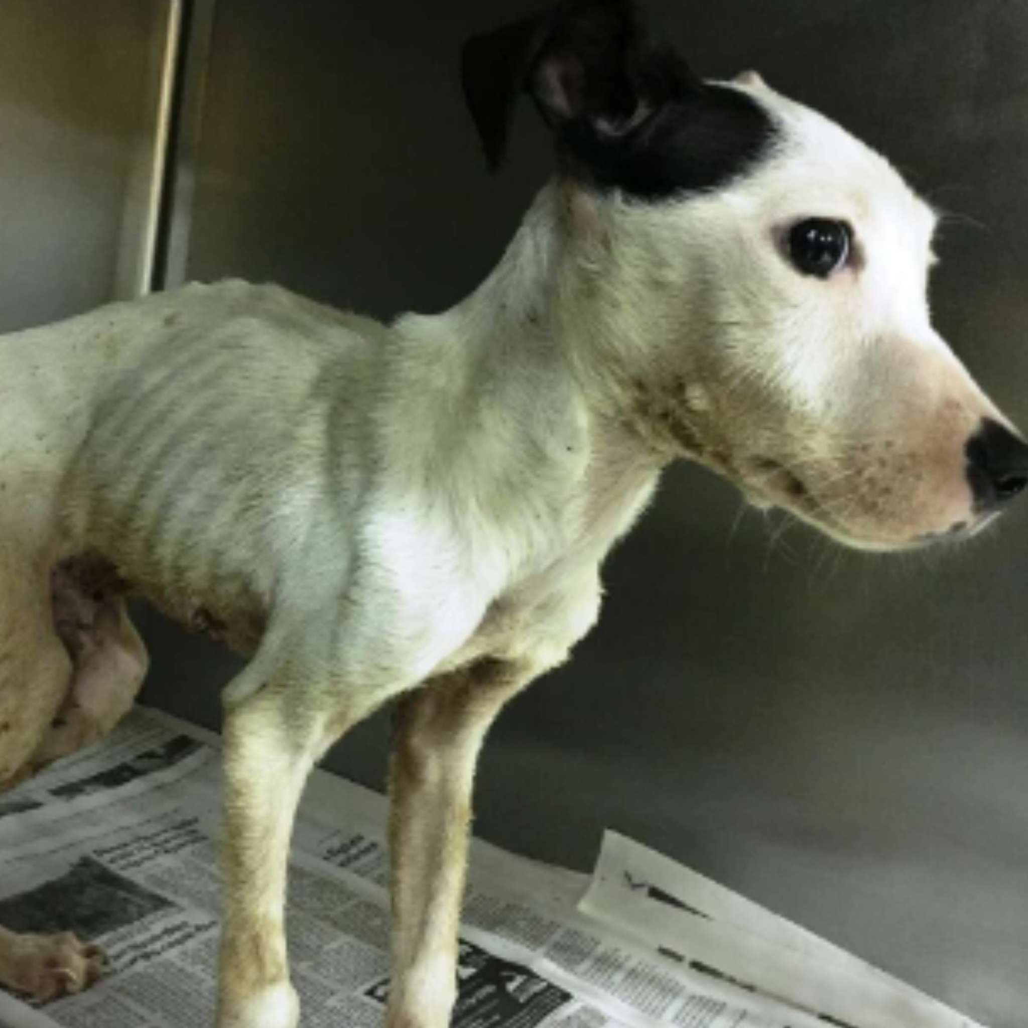 Stała w kącie klatki tak, jakby sama klatka stała się częścią jej ciała, a ona — częścią bezgranicznej, ciężkiej ciszy, która przeżerała przestrzeń wokół. Jej ciało było niemal przezroczyste: każda kość wystawała, jak znaki cudzej obojętności i krzywdy. Skóra napięta, żebra — jak krzywe struny, z których już nie da się wydobyć ani dźwięku, ani melodii życia. Sierść, kiedyś biała, teraz była matowa, poszarzała, a tylko jedno czarne ucho kontrastowało gwałtownie, przypominając, że kiedyś mogła być radosnym psem, tym, do którego ludzie się uśmiechają i pochylają, by pogłaskać. Dziś został z niej jedynie cień tamtej istoty.