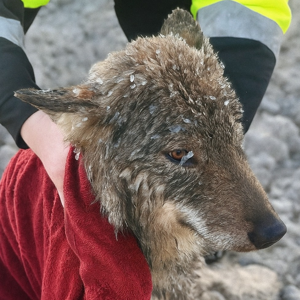 — „Nie bój się, maluchu, wyciągnęliśmy cię”, — zabrzmiał ludzki głos, a zwierzę ledwie zauważalnie mrugnęło, jakby chciało uwierzyć.