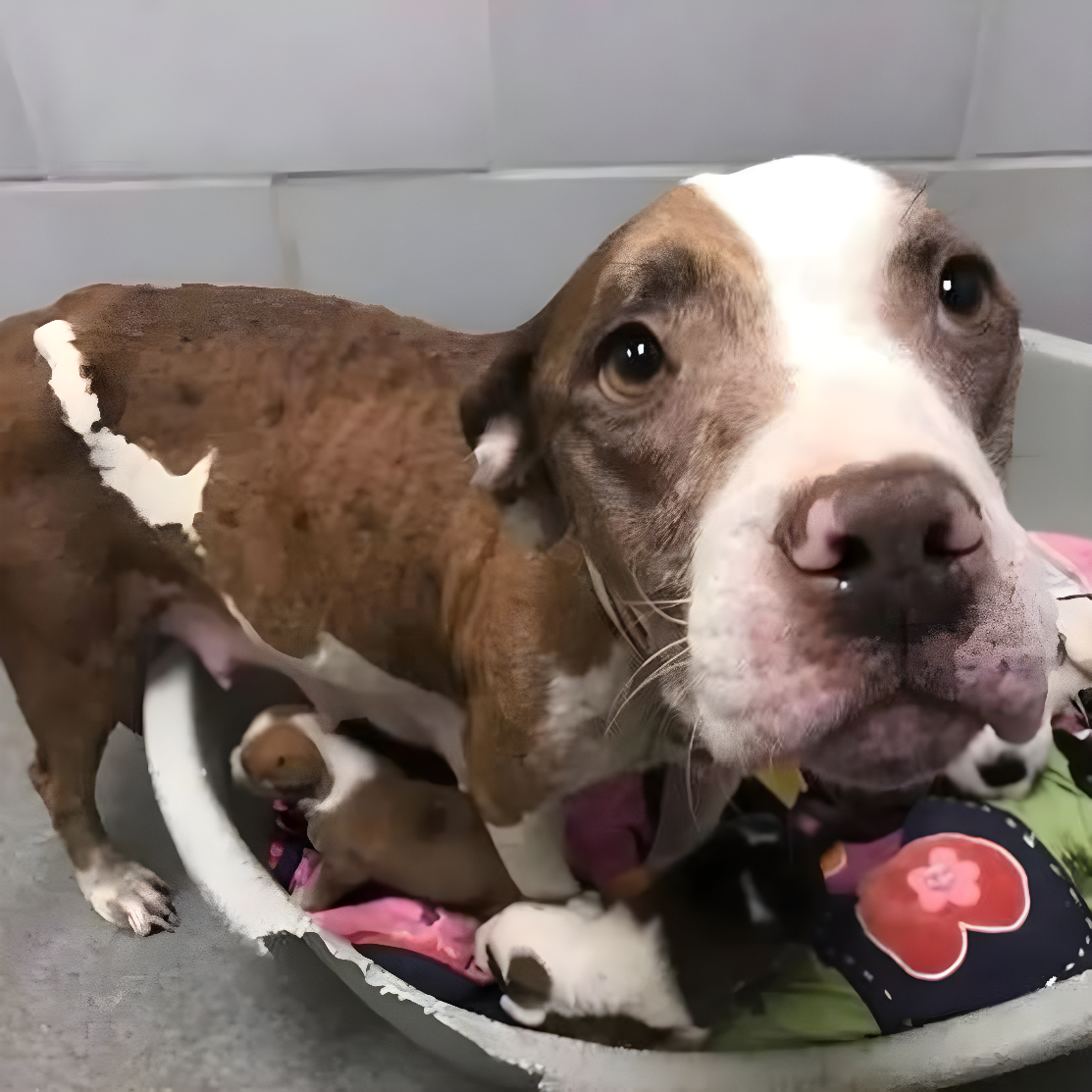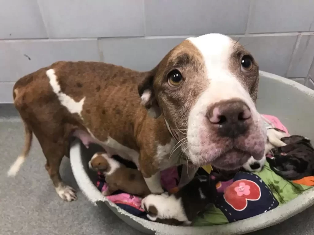 Mimo że Melody była wycieńczona, jej szczenięta wyglądały na zadbane i dobrze odżywione — to właśnie ta opieka matki przykuła uwagę wolontariuszy. W hałasie i smutku przeludnionego schroniska jej instynkt opiekuńczy stał się jasnym znakiem: warto zrobić wszystko, by dać jej szansę.