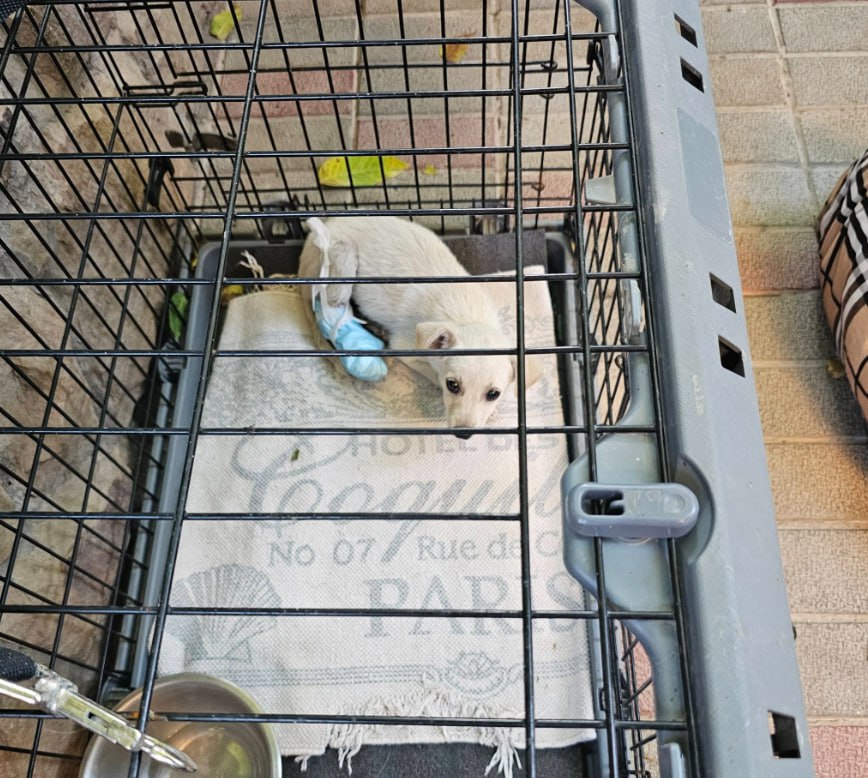 Jej maleńkie ciałko było tak kruche, że wydawało się, iż jeden nieostrożny dotyk może złamać ją na zawsze. Mała sunia, z delikatnym futerkiem w kolorze śmietankowego kremu, skulona w kącie transportera, z bandażem na łapce i oczami pełnymi bólu, strachu i… pogodzenia się z losem.