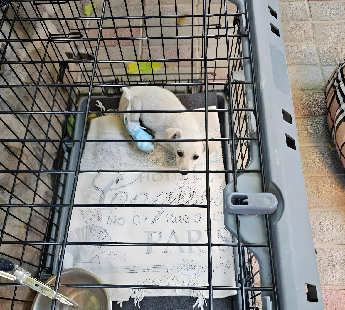 W nosidełku, skulona i niemal bez ruchu, leżała maleńka suczka. Jej delikatne, kremowe futerko wydawało się tak kruche, że każde poruszenie mogło zakończyć się tragedią. Bandaż na łapce, oczy wypełnione bólem i lękiem — a przy tym dziwne, ciche poddanie: jakby istota znała już wyrok.