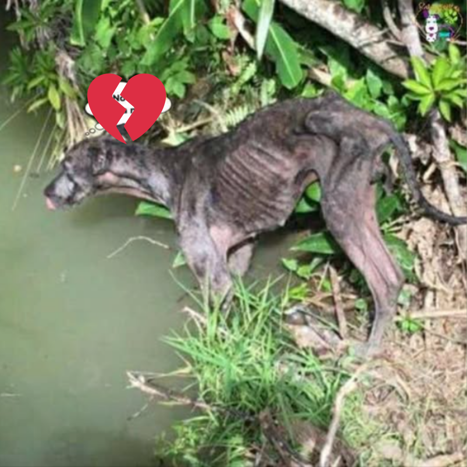 Siedział nad rzeką, chudy jak cień, prawie szkielet, ale żywy. Jego sierść wypadała kępami, żebra sterczały, oczy były puste. Patrzył w wodę, jakby chciał się w nią rzucić i skończyć wszystko.