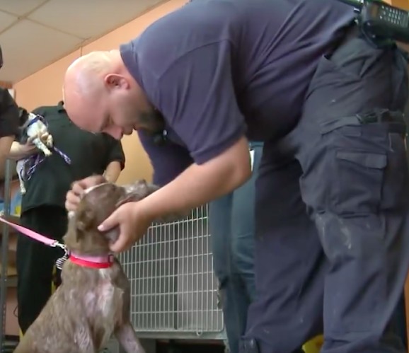 Для достижения лучших результатов команда обратилась в Мичиганское общество защиты животных, где собаку быстро обули в поводок. Собаки были рады, что наконец-то пришёл момент спасения.