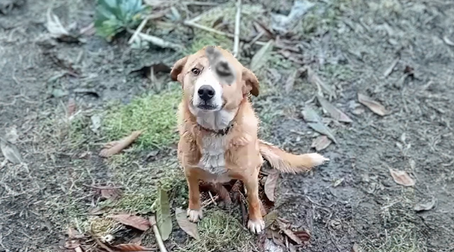 Podczas zwykłego spaceru napotkaliśmy psa z obitym pyszczkiem i oczami, które mówiły więcej niż słowa — pełne strachu, a jednak proszące o ratunek. Chwilowo podszedł do nas, po czym szybko zawrócił w stronę domu, jakby obawiał się zatrzymać dłużej.