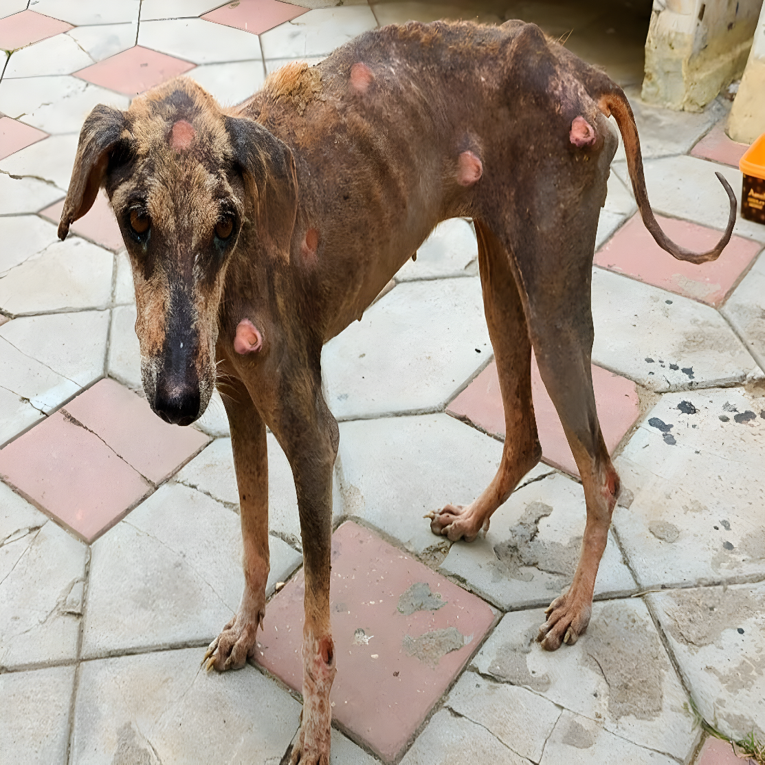Pewien bezdomny pies, dotknięty ciężką postacią świerzbu, został odnaleziony w stanie, który nosił ślady długotrwałego zaniedbania: sierść poprzerywana łysymi plamami i mocno zbita w kołtuny. Mimo tego widocznego bólu, w jego spojrzeniu tliła się jeszcze iskra — niemal prośba o ratunek, którą dostrzegli przechodnie i zdecydowali się działać.