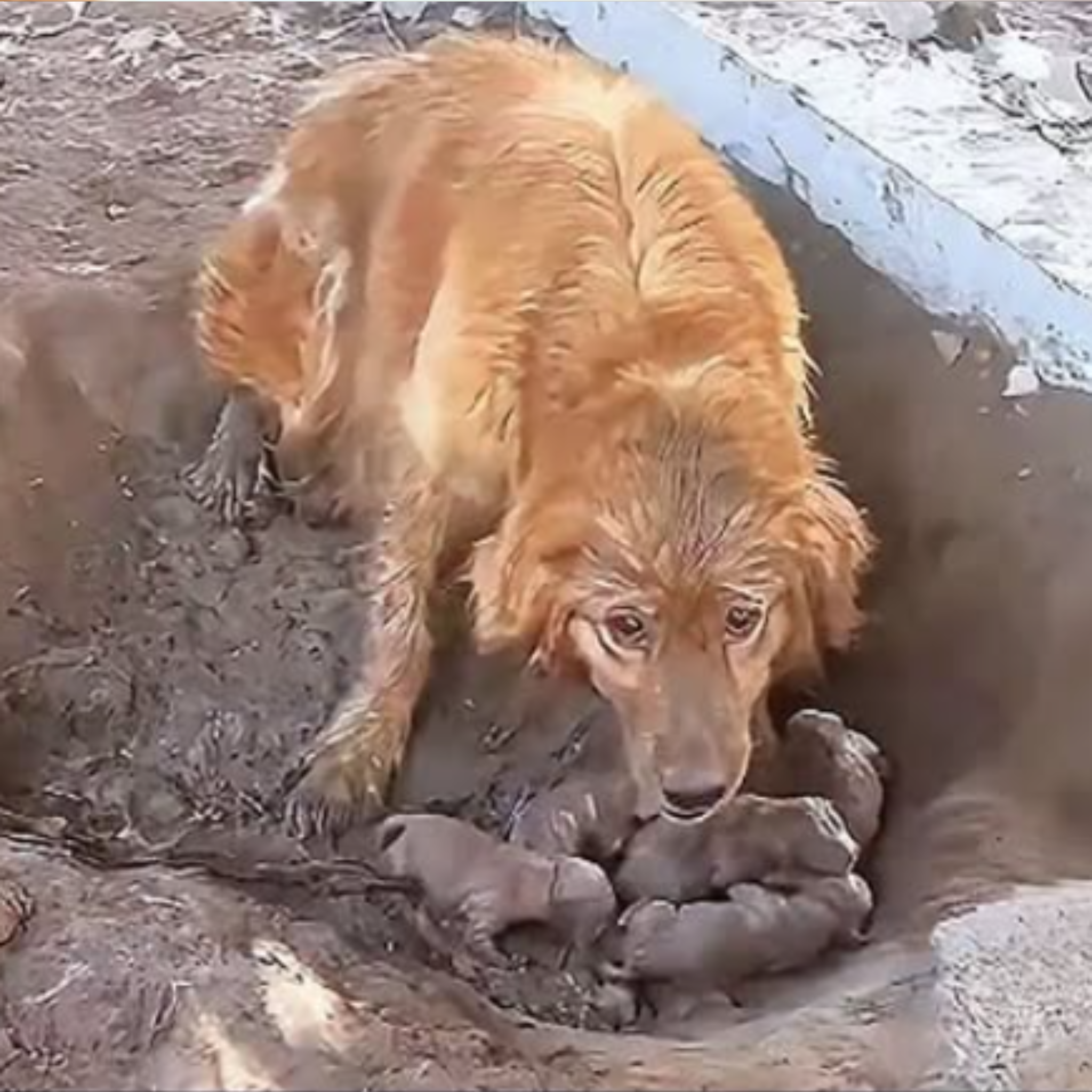 Pozostało jej jedno – miłość do szczeniąt. Nawet w najgorszych warunkach, w błotnistej jamie, gdzie ziemia nasiąkła deszczem, a wiatr przeszywał do kości, chroniła swoje maluchy własnym ciałem, próbując je ogrzać i ocalić.