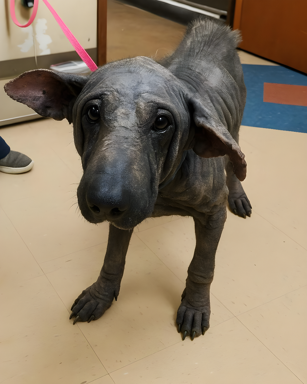 Gdy ratownicy po raz pierwszy ujrzeli Grinch’a, wyglądał on jak cień dawnego psa – jego skóra była popękana i szara, a ciało cienkie oraz bezwładne, jakby wyrzeźbione z kamienia. Nie merdał ogonem ani nie podnosił głowy – po prostu leżał tam, milczący i nieruchomy, pozostawiając wielu zastanawiających się nad jego przeszłością. Nikt nie znał jego historii, ale jego ciało zdradzało miesiące cierpienia i zaniedbania.