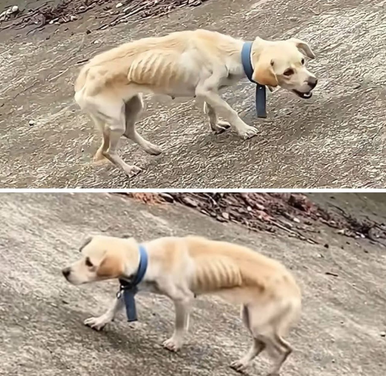 Stał na lekkim wzniesieniu, pochylony jak cienka gałąź pod śniegiem. Sierść matowa, wyblakła, żebra wystające jak u rzeźby, łapy drżały ze zmęczenia. Ale głowę trzymał dumnie — na szyi miał nowiutką, niebieską obrożę. Obroża mówiła, że „jest czyjś”, ale wszystko inne mówiło, że został zapomniany. Samochody mijały go falami: szum, wiatr, szelest żwiru. Za każdym razem lekko unosił się na łapach, jakby chciał skoczyć naprzód. Za każdym razem opuszczał głowę i wracał na swoje miejsce — do plamy asfaltu, gdzie zapach deszczu mieszał się z czekaniem.