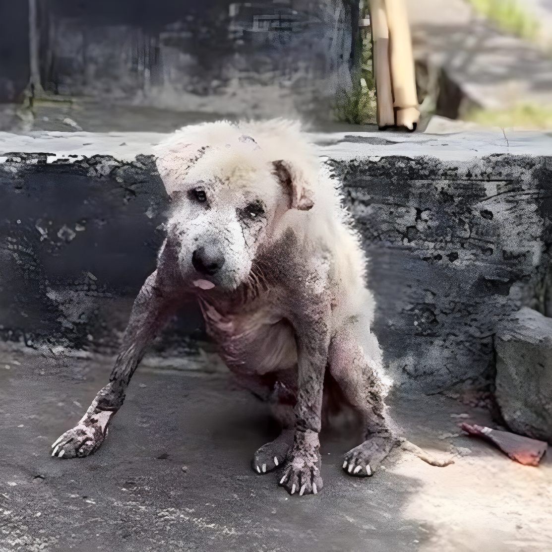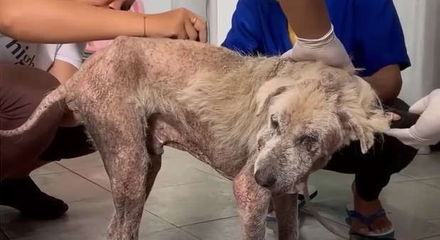 Widok Ossiego nie pozostawiał wątpliwości: przeszedł poważne trudności, być może nawet przemoc. Łuszcząca się, poraniona sierść i widoczne blizny świadczyły o długotrwałym cierpieniu, a wychudzona sylwetka mówiła sama za siebie.