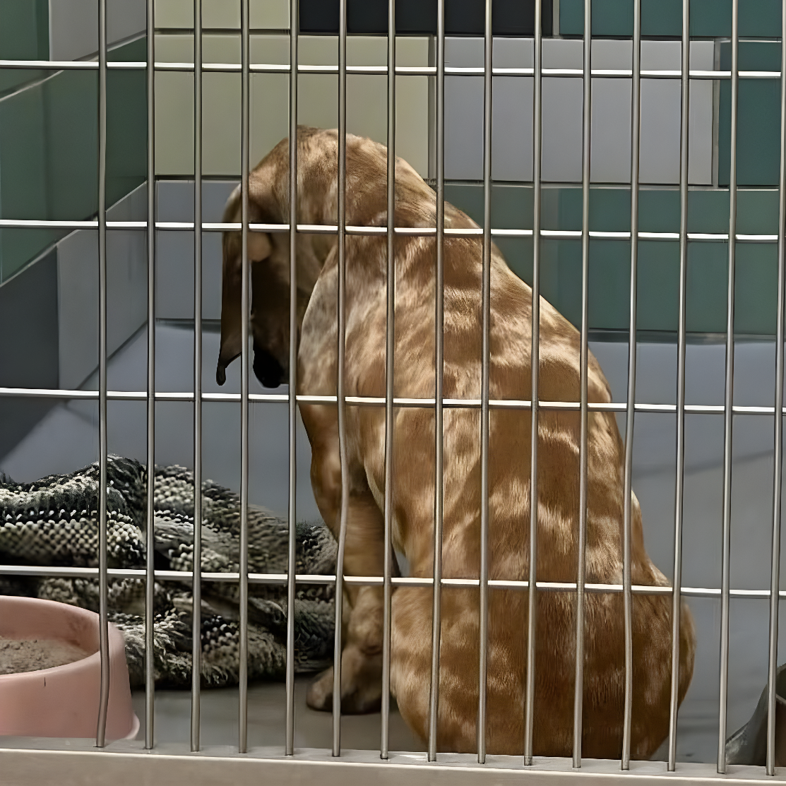 - W najdalszym boksie siedział on — duży, cętkowany pies, skulony i z spuszczoną głową.
