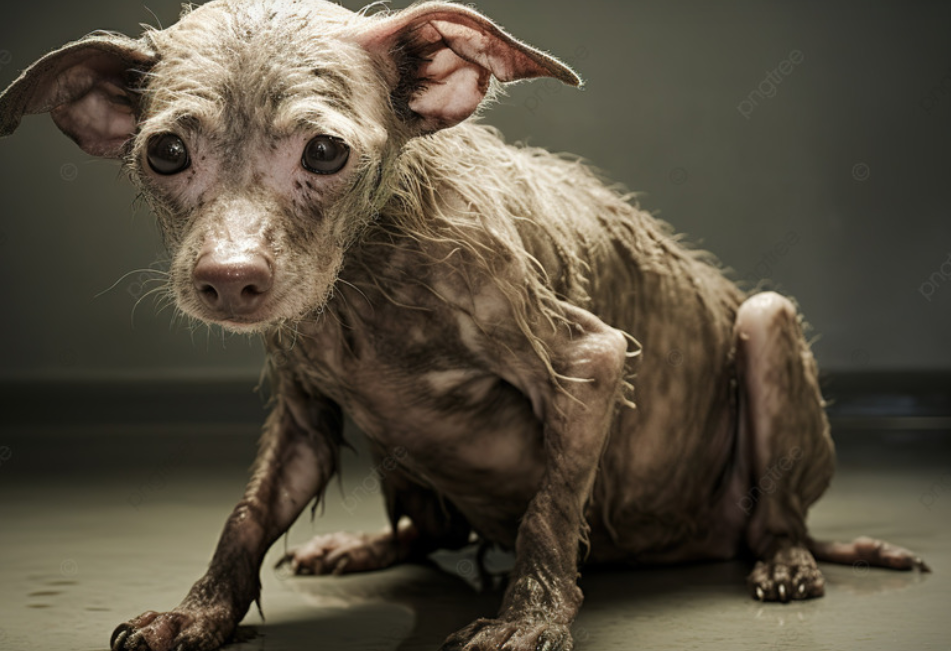 Zastygła. Upuściła torby. Podeszła. I zobaczyła wszystko: chude ciało z wystającymi żebrami, ranki na łapach, łuszczącą się skórę, zapach strachu, ropy i rozpaczy. Nie skomlał, nie próbował uciec — tylko patrzył. Nawet nie mrugnął.