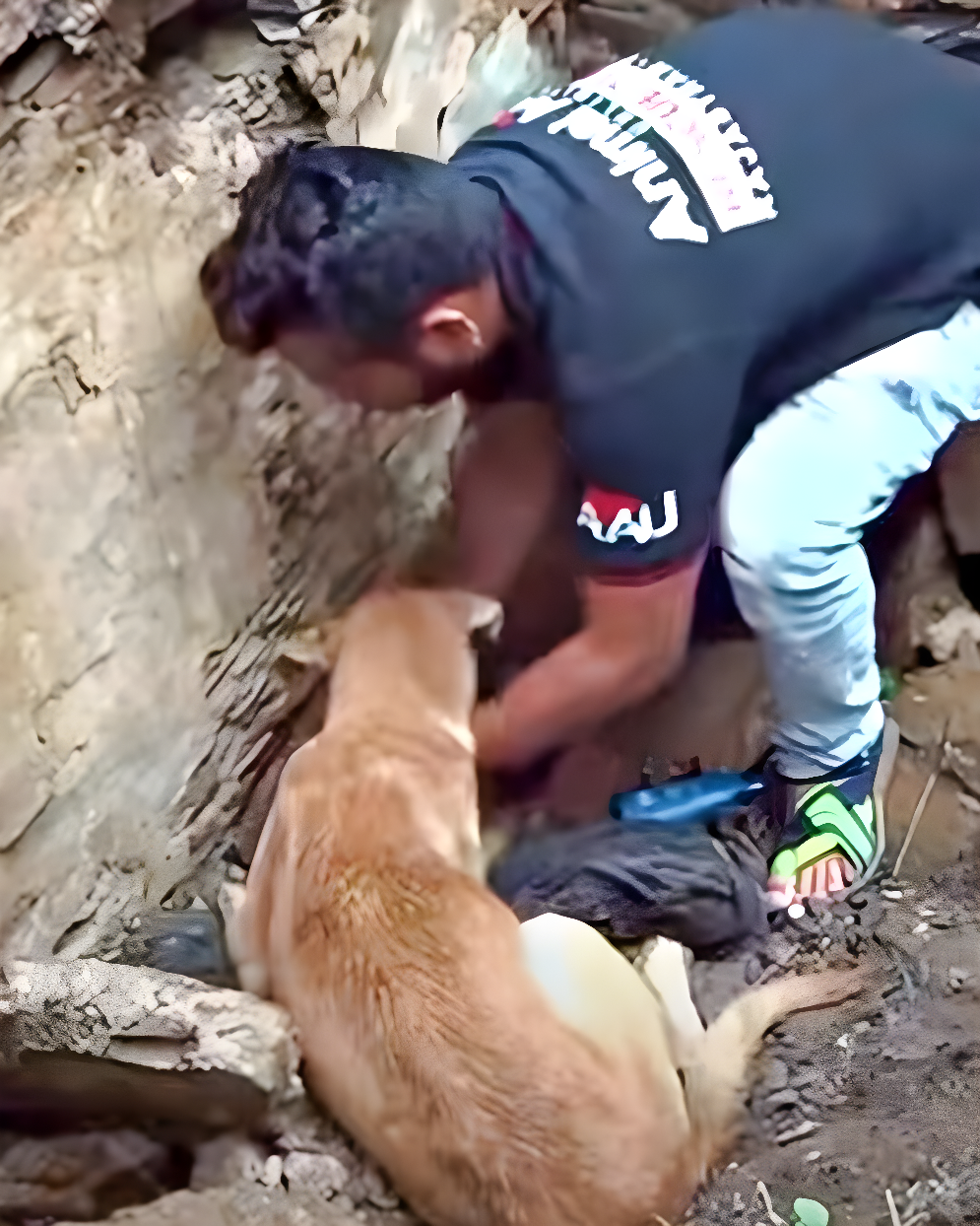 Po wielu minutach intensywnej pracy zaczęły pojawiać się pierwsze maluchy — wyciągane z ciasnych przestrzeni pod rumowiskiem. Były głęboko zakopane i zanurzone w kurzu, ale dzięki współdziałaniu człowieka i matki zaczęły odzyskiwać oddech i siły. Za każdym razem, gdy kolejne szczenię opuszczało pułapkę, matka węszyła je, pielęgnowała i natychmiast wracała do motywowania ratownika, by kontynuował wykopywanie.