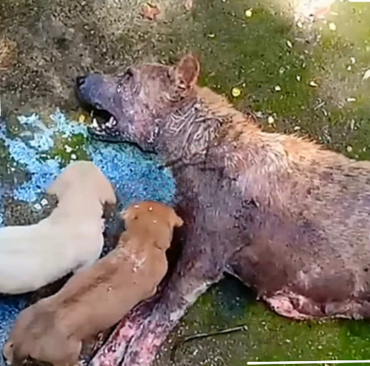 W zgiełku miejskich ulic, gdzie każdego dnia mijamy setki widoków, jedna prośba o pomoc — niemal niezauważona — przemówiła głośniej niż otaczający hałas. Na stercie odpadków leżała wychudzona matka, tak słaba, że nie potrafiła wstać. Mimo skrajnego wyczerpania jej instynkt walczył o jedno: ochronić swoje nowo narodzone szczenięta.