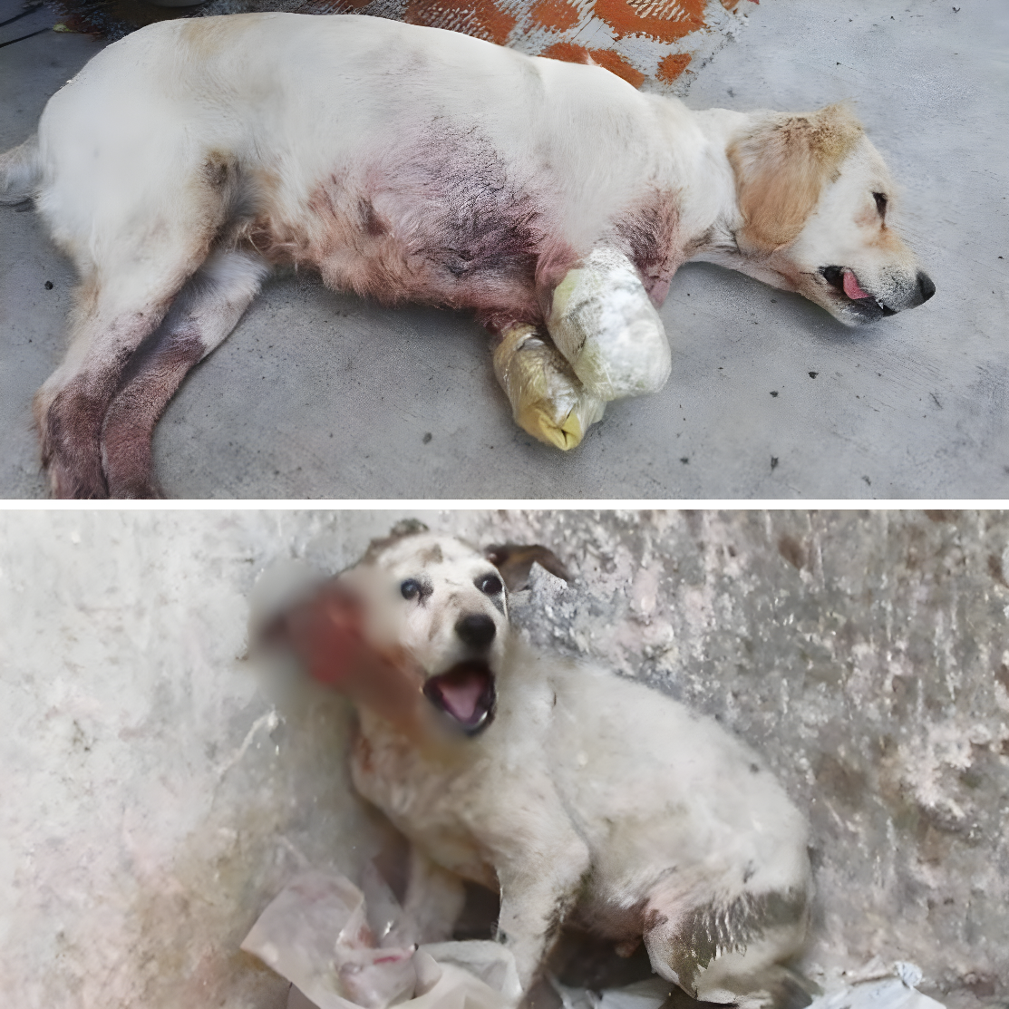 Poruszające spojrzenie szczeniaka bez przednich łap — walka o przetrwanie i nadzieję
