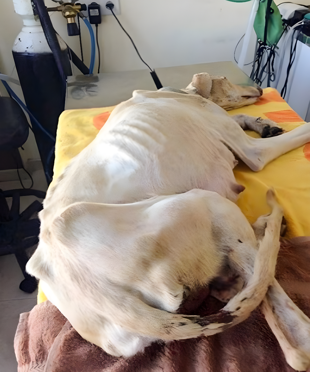 W niewielkim targowisku w miejscowości Vera w Hiszpanii przechodnie natrafili na wychudzonego charta, który kulejąc przeciskał się między stoiskami. Psycholog Liane Powell, widząc zwierzę o wyraźnie złamanej kończynie i osłabionej sylwetce, nie zwlekała i od razu zawiozła je do kliniki weterynaryjnej.