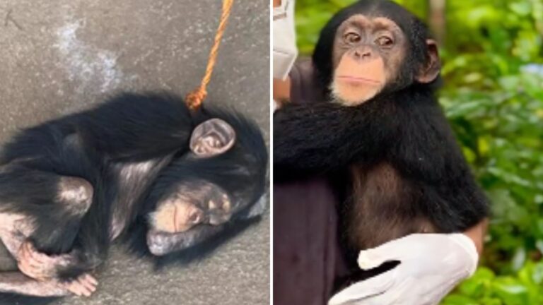 Słodki szympans odnajduje bezpieczeństwo i miłość w sanktuarium.