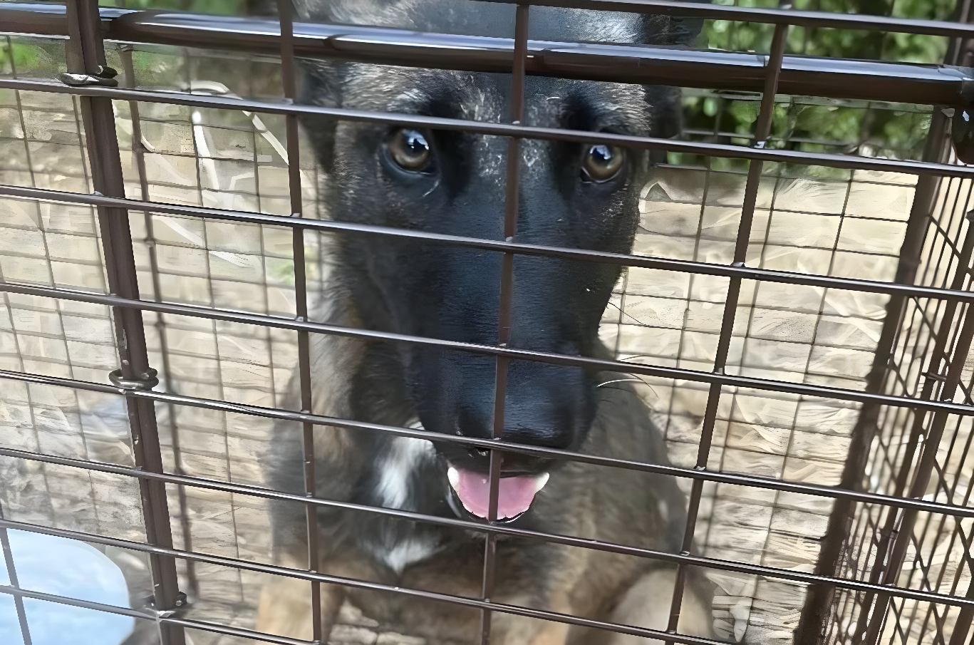 Po dokładnym sprawdzeniu okazało się, że odnaleziony młody pies to belgijski malinois, około siedmiu miesięcy. Schodzenie w dół z klatką okazało się kolejną przeszkodą — teren był tak wymagający, że jedna osoba nie dała rady bezpiecznie przenieść pułapki. Wtedy do akcji wkroczyli lokalni strażacy — czterech mężczyzn pomogło przetransportować szczeniaka na stabilne podłoże.