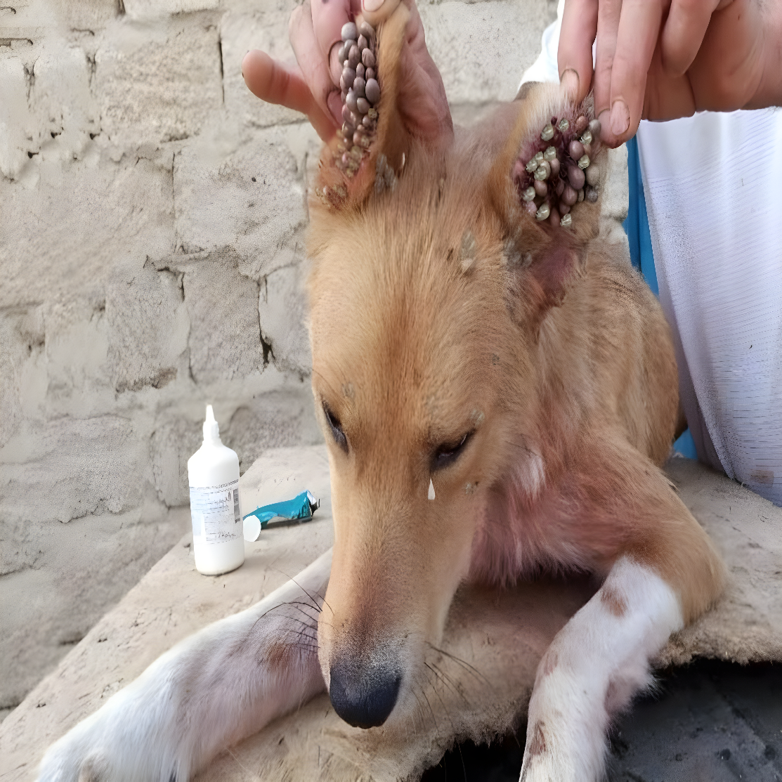 Związek zaufania rozwijał się powoli. Gdy Nala w końcu pozwoliła podejść bliżej, objawy zaniedbania ujawniły się w pełni: uszy były opanowane przez ogromną ilość kleszczy, co powodowało intensywne swędzenie, obrzęk i wyraźny zapach ropnego zakażenia. Dodatkowo za uchem widoczna była bolesna, owrzodzona rana, będąca źródłem silnego dyskomfortu.