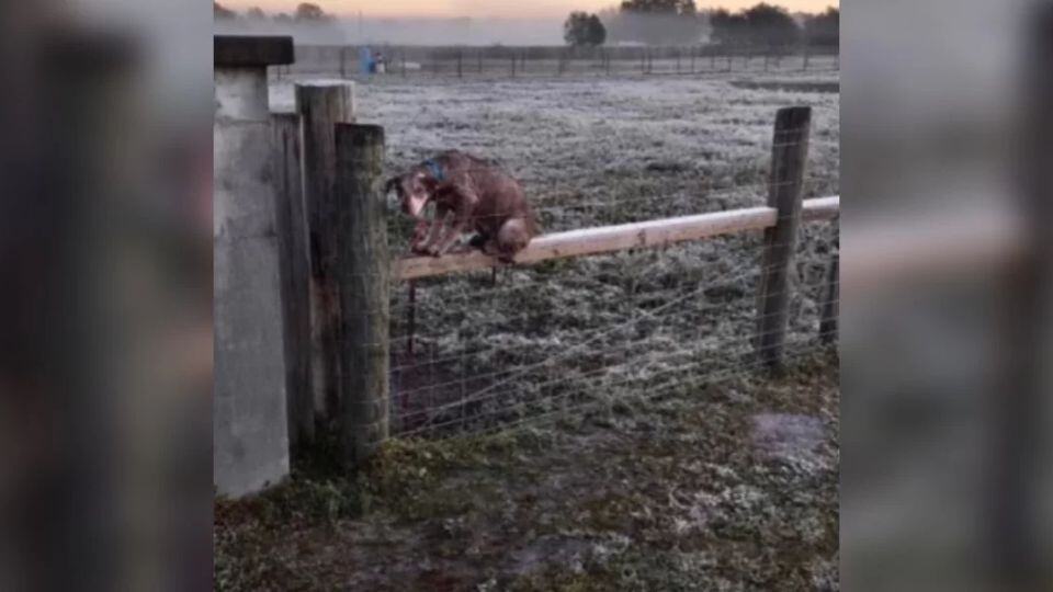 Telefon Nichole zawibrował rankiem i na ekranie pojawiło się zdjęcie, które wstrząsnęło jej do szpiku — mała, wychudzona suczka przywiązana na górze ogrodzenia jej działki. Proste słowa pod fotografią informowały: „Ten pies jest przy twoim płocie”.