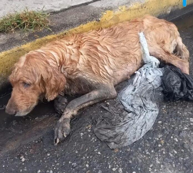 В дождливый день волонтеры фонда JR Rescata обнаружили на грязной дороге собаку — беспомощную, промокшую и явно нуждающуюся в помощи. Её внешний вид, слабость и открытая рана свидетельствовали о долгих скитаниях и страданиях, прежде чем она наконец нашла того, кто мог помочь.