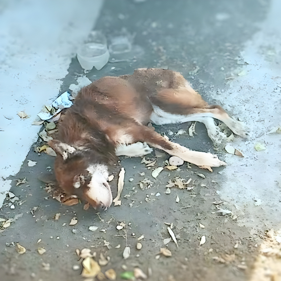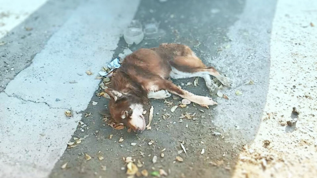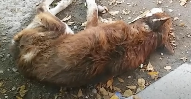 Leżał bez sił na chodniku — ciało wychudzone, łopatki i żebra widoczne pod skórą, a postawa zdradzała lata bólu i zaniedbania. Przechodnie omijali go obojętnie, jakby nie dostrzegając rozpaczliwej prośby o pomoc, aż w końcu wydawało się, że jego marzenie o lepszym życiu dosięga kresu.