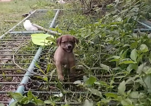 W gęstwinie przy prywatnej posesji odnaleziono maleńkiego psa — uwięziony między prętami żelaznego ogrodzenia, pozostawiony bez opieki. Osoba, która natrafiła na to zdarzenie, natychmiast podjęła próbę jego uwolnienia i wezwała pomoc.