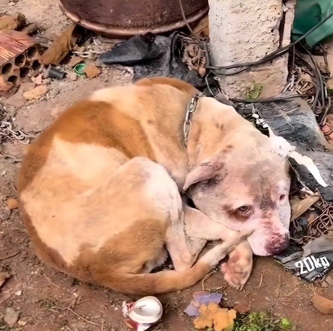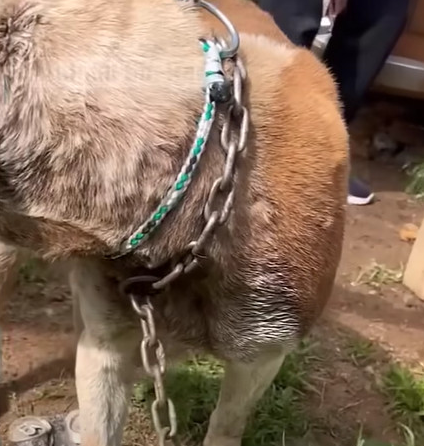 Kiedy dotarła do nas prośba o interwencję, miejsce zdarzenia zaskoczyło nas swoim obrazem: dwa psy uwiązane mocnymi łańcuchami, wychudzone i pozbawione pożywienia, ledwie trzymały się przy życiu. Jeden z nich był tak osłabiony, że nie potrafił stanąć na łapach, podczas gdy drugi — mimo własnego bólu — bez przerwy próbował zwrócić na siebie uwagę ratowników, jakby prosił o pomoc przede wszystkim dla towarzysza.