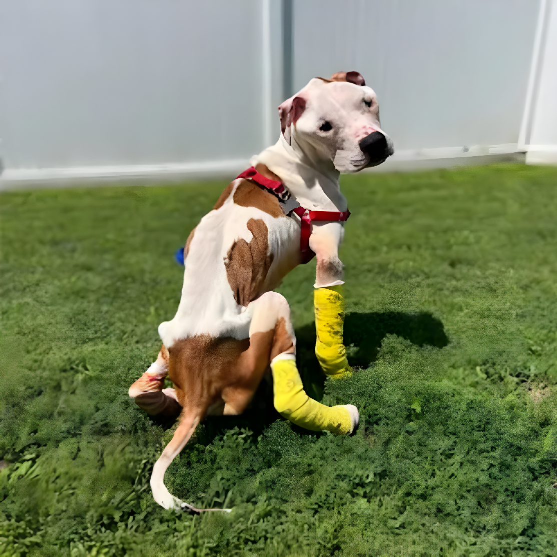 Собака, 10-летний бело-коричневый стаффордширский бультерьер, получила имя «Икс» от тех, кто её нашёл. Сотрудники RSPCA призывают всех, кто может предоставить информацию о прошлом собаки или её бывшем владельце, немедленно связаться с ними.