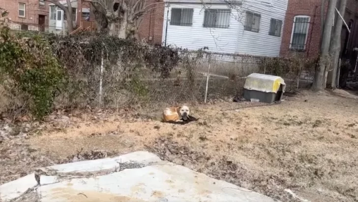 Когда спасатели подошли к дому, они были поражены: маленький пес был привязан к будке. Его миска с водой замерзла, он сворачивался на холодной земле, видимо, дрожа от пронизывающего ветра.