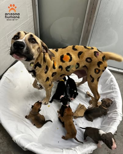 Mieszkaniec jednej z dzielnic Phoenix zgłosił widok psa przypominającego lamparta — związany na słońcu, w towarzystwie szczeniąt. Na miejsce przybyli ratownicy z Arizona Humane Society (AHS) wraz z funkcjonariuszami policji i odkryli jednak, że nie chodzi o dzikiego kota, lecz o 5‑letnią suczkę rasy pit bull mix nazwaną później Rainbow Brite, wraz z dziewięcioma młodymi.