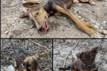 Obok, w zaroślach, odkryto maleństwa. Szczeniaki – równie opuszczone, równie głodne. Jeden rozpaczliwie grzebał w śmieciach, znalazł kawałek jedzenia i chwycił go kurczowo, jakby od tego zależało jego życie. Drugi siedział nieruchomo, patrząc na świat szeroko otwartymi oczami – jednocześnie pełnymi nadziei i strachu. Ich maleńkie ciała drżały, łapki były chwiejne, ale w tych dzieciach ulicy płonęła ta sama iskra, co w ich matce – pragnienie życia.