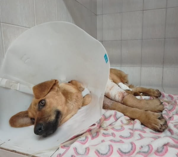 — Złamanie ustabilizowane, tkanki się goją. Kołnierz jeszcze dwa tygodnie, opatrunki co drugi dzień. Na spacery jeszcze za wcześnie, ale stawiać łapy trzeba. Ważne, żeby uwierzył w oparcie. Bez tego mięśnie się nie obudzą.