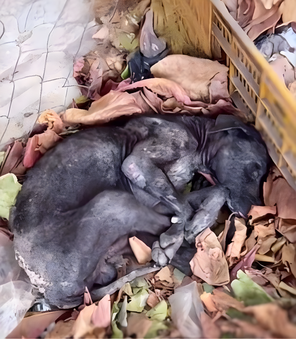 Znalazł się skulony pośród suchych liści, ze zmęczonym ciałem, które drżało przy najlżejszym powiewie wiatru. Pierwszą osobą, która go dostrzegła, był pracownik wywozu odpadów — pies poruszał się ostrożnie, miał wyraźnie przegryzioną kondycję i nosił na sobie ślady długotrwałego zaniedbania.