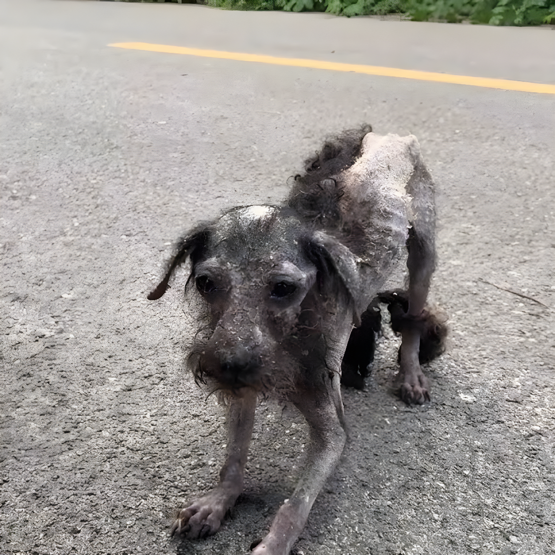 Na poboczu drogi pojawił się wychudzony pies — jego zmatowiona sierść i chuda sylwetka natychmiast przyciągnęły wzrok przechodniów. Choć zwierzę zachowywało się wycofanie i pełne lęku, dawało się dostrzec, że tęskni za ludzkim dotykiem; nie wiedziało jednak, czy ludzie okażą mu dobroć, czy krzywdę.