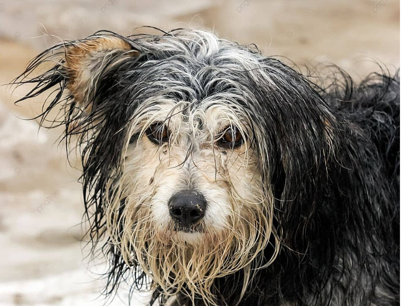 Miał gęstą, długą sierść, kiedyś pewnie nawet piękną. Teraz była cała skołtuniona, mokra, zwisała ciężkimi kępami, przylepiona do boków. Ale najgorsze były oczy. Ciemne, zmęczone, takie, jakby na stałe zamieszkała w nich rezygnacja. Jakby dawno przestał czekać na coś dobrego. A jednak — co wieczór wracał w to samo miejsce, jakby tam kiedyś był jego dom…